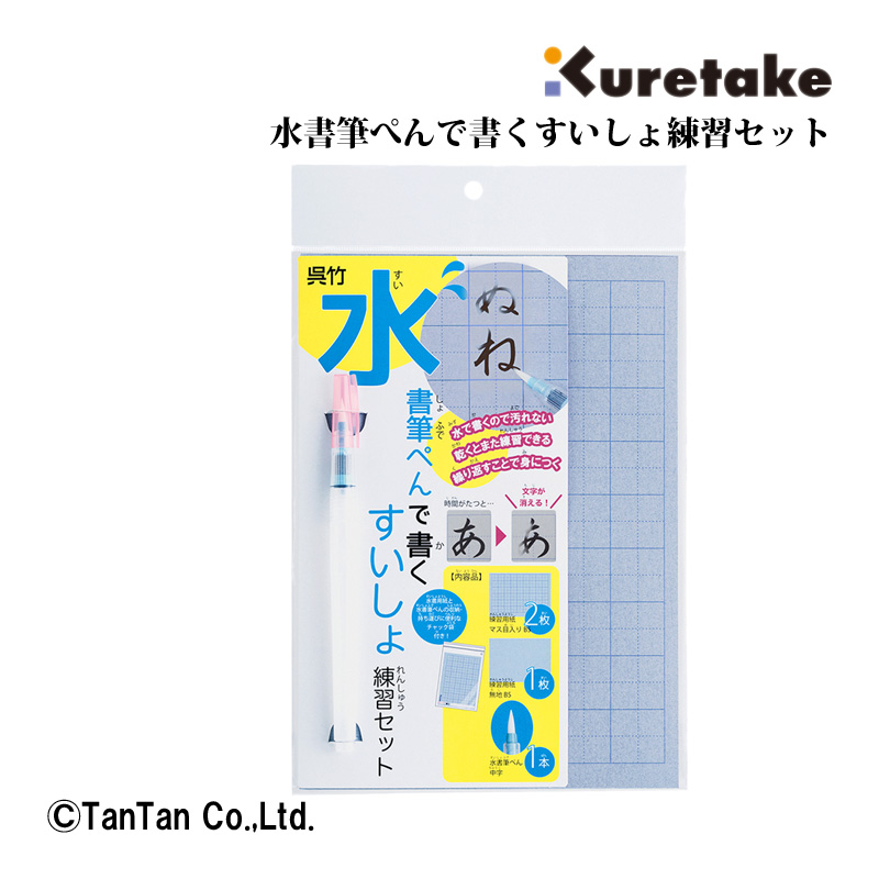●セット内容:水書筆ぺん中字1本,練習用紙マス目入り2枚,練習用紙無地1枚,チャック袋