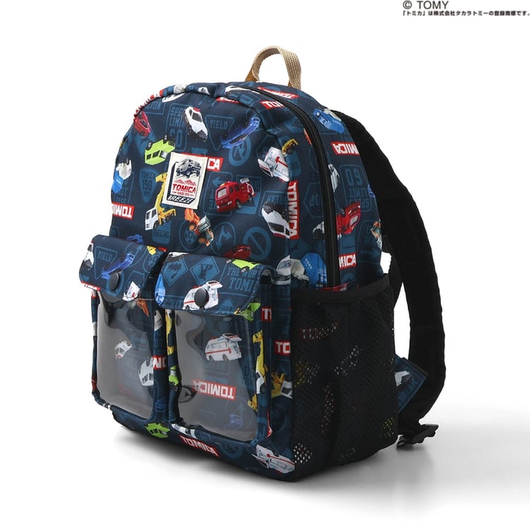 トミカ TOMICA コラボ リュック リュックサック バックパック デイパック キッズ 子供用 男の子 乗り物 車 働く車 パトカー 消防車 ブルドーザー クリアポケット 透明ポケット お弁当バンド ネームタグ 遠足 通園 通学 習い事 幼稚園 保育園 小学校 お出かけ お洒落 かっこいい プレゼント ギフト 贈り物 ラッピング BREEZE ネイビー 紺色