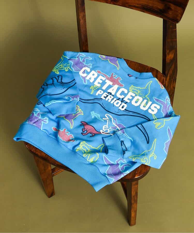 カラフルな恐竜の総柄デザインでゆったりとしたシルエットがポイント◎
