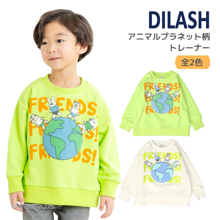 トップス トレーナー スエット スウェット ロングスリーブ 長袖 裏毛 ドッグ 犬 カジュアル お洒落 オシャレ かっこいい かわいい 可愛い 普段着 デイリーウェア お出かけ着 お外着 お外遊び着 子ども服 こども服 男児 男の子 ボーイズ キッズ ベビーサイズ トドラーサイズ 幼稚園 保育園 小学校 通園 通学 小学生 プレゼント ギフト 贈り物 ラッピング DILASH ディラッシュ オフ 白色 ライム