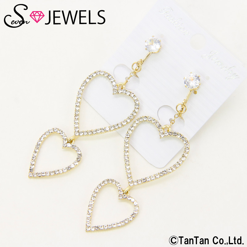 ラインストーン入りのハートが印象的でおしゃれなイヤリングです。シンプルで使い勝手も良く、ゆらゆら揺れるデザインが目を引くデザイン!