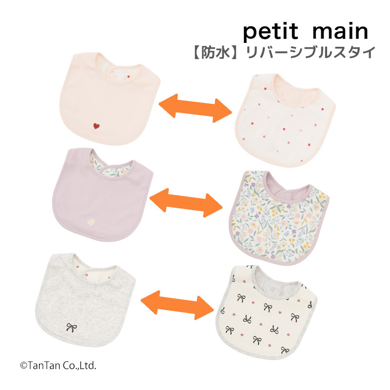 防水 リバーシブルスタイ プティマイン ハート お花 リボン 女の子 ベビー ギフト petit main K 新作 2503 63