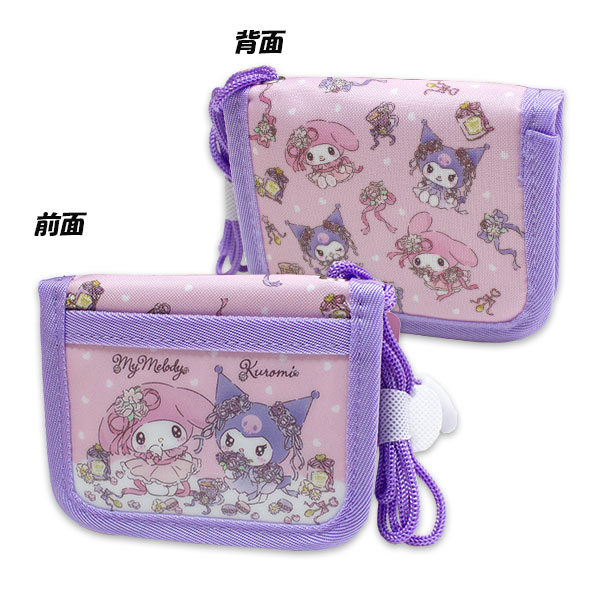 送料無料 マイメロディ&クロミ 窓付き財布 約H100×W115×D20mm ラウンドファスナー二つ折りサイフ ネックストラップ付き 2025-2026年