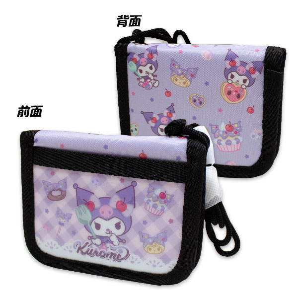送料無料 クロミ 窓付き財布 約H100×W115×D20mm ラウンドファスナー二つ折りサイフ ネックストラップ付き kuromi 2025-2026年