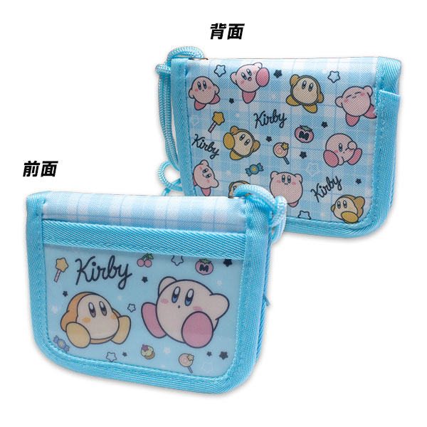 送料無料 星のカービィ 窓付き財布 ブルー 約H100×W115×D20mm ラウンドファスナー二つ折りサイフ ネックストラップ付き Kirby 2025-2026年