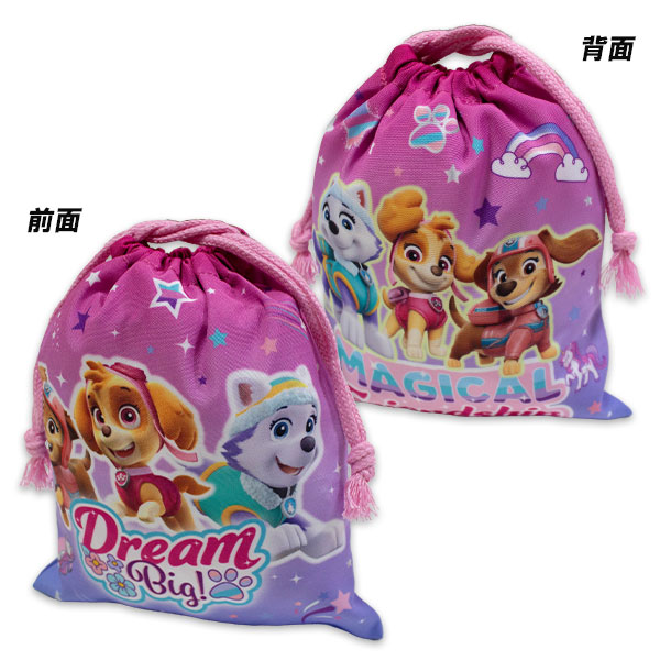 パウ・パトロール 巾着 S パープル 約H210×W180mm 給食袋 きんちゃく 袋 小物入れ パウパト PAW PATROL 2025-2026年