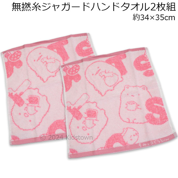 すみっコぐらし 無撚糸ジャガード ハンドタオル2枚組 ピンク アルファベット柄 約34×35cm タオル 2024年版