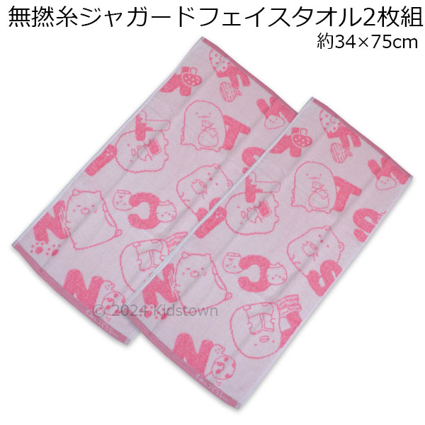 すみっコぐらし 無撚糸ジャガード フェイスタオル2枚組 ピンク アルファベット柄 約34×75cm タオル 2024年版