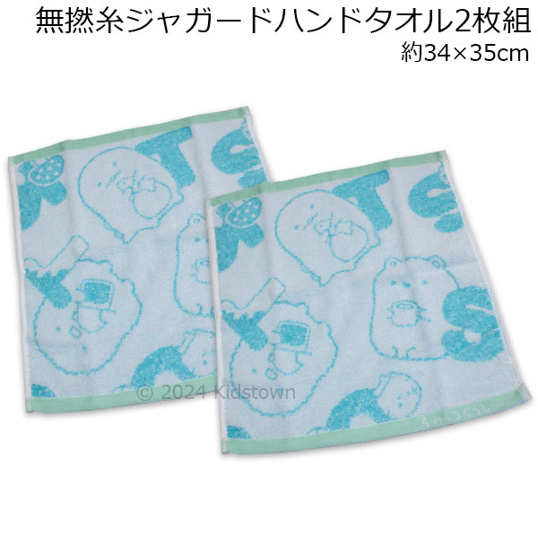 すみっコぐらし 無撚糸ジャガード ハンドタオル2枚組 サックス アルファベット柄 約34×35cm タオル 2024年版