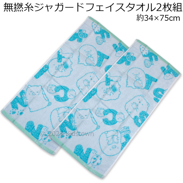 すみっコぐらし 無撚糸ジャガード フェイスタオル2枚組 サックス アルファベット柄 約34×75cm タオル 2024年版