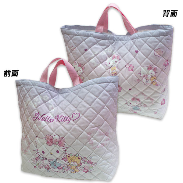 送料無料 ハローキティ キルトレッスンバッグ大 ピンク QKT8-2780 約45cm×35cm×10cm 日本製 キルトバッグ 手提げ バッグ HELLO KITTY Sanrio 2025-2026年