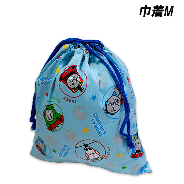 きかんしゃトーマス 巾着 M サックス HTO5-980 約26.5cm×29.5cm 日本製 エプロン 上履き きんちゃく 袋 小物入れ thomas 2025-2026年