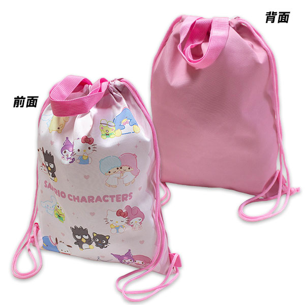 送料無料 サンリオキャラクターズ ナップサック 約400mm×310mm ポリエステル100% 手提げバッグ リュック Sanrio characters 2025-2026年