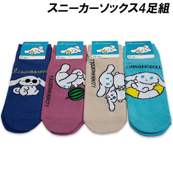 送料無料 アイシナモン スニーカーソックス4足組 23-25cm 靴下 ソックス cinnamoroll シナモ キャラクター Sanrio 2026年
