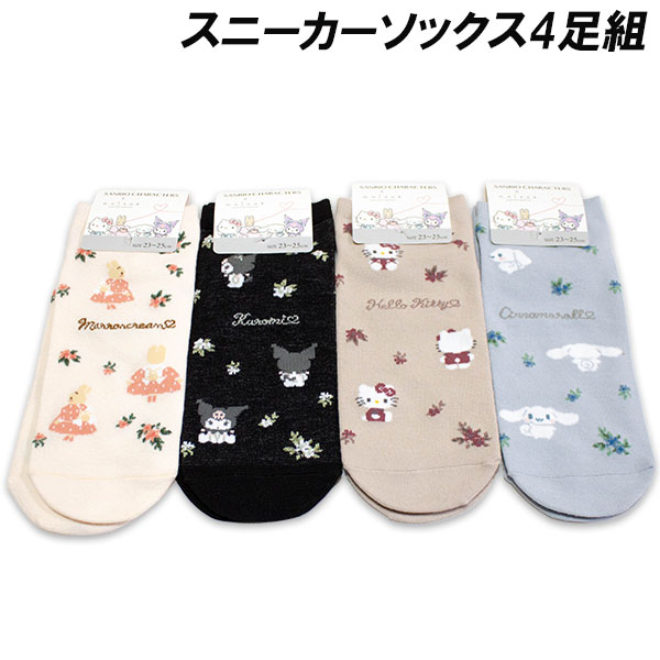 送料無料 サンリオ スニーカーソックス4足組 花柄 23-25cm 靴下 ソックス キャラクター Sanrio 2026年
