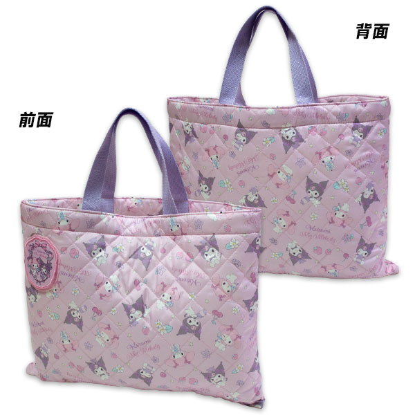 送料無料 マイメロディ&クロミ キルトレッスンバッグ 約H310×W395mm ポリエステル100% キルトバッグ 手提げ バッグ my melody kuromi 2025-2026年