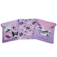 送料無料 クロミ 巾着3枚組 約18×21cm ポリエステル100% ランチ kuromi サンリオ Sanrio 2023‐2024年