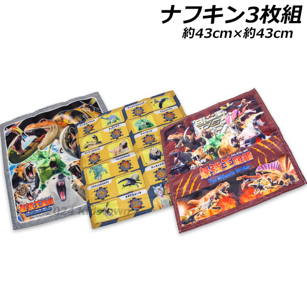 送料無料 最強王図鑑 ナフキン 3枚組 約43×43cm ランチクロス ランチョンマット 動物 昆虫 恐竜 2024年-2025年