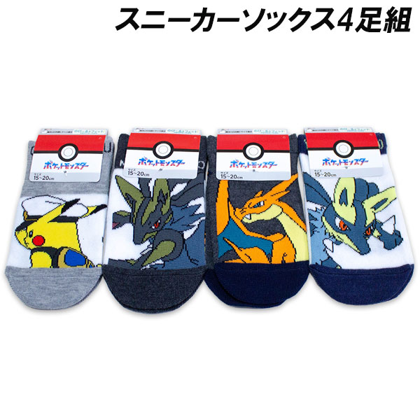 送料無料 ポケモン スニーカーソックス4足組 15-20cm 19-24cm 靴下 ソックス ポケットモンスター Pocket Monsters キャラクター 2026年
