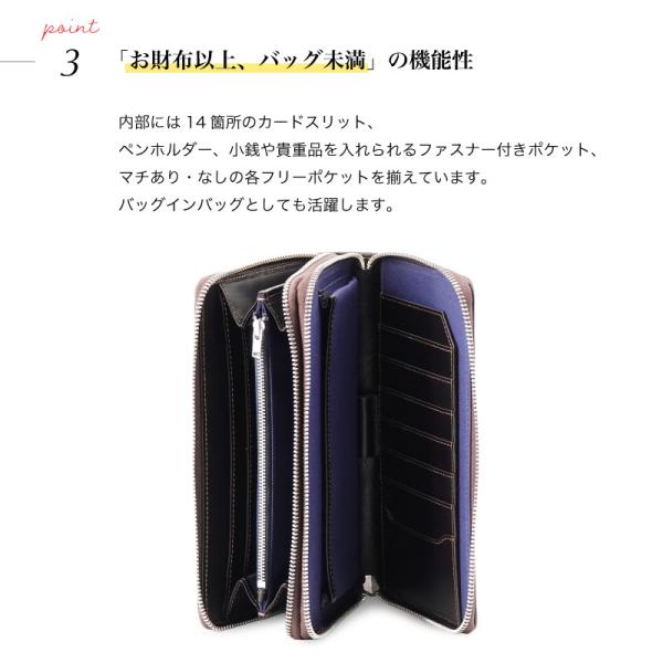 財布機能はもちろんのこと、パスポートやスマートフォンを収納してスタイリッシュに持ち歩けるオーガナイザー。