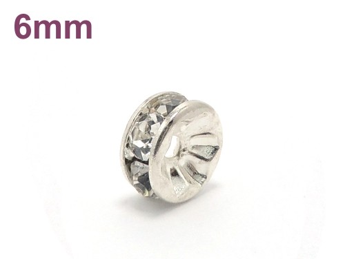平ロンデル クリスタル/シルバー 6mm×3mm 5個セット ハンドメイド・手作りアクセサリー用