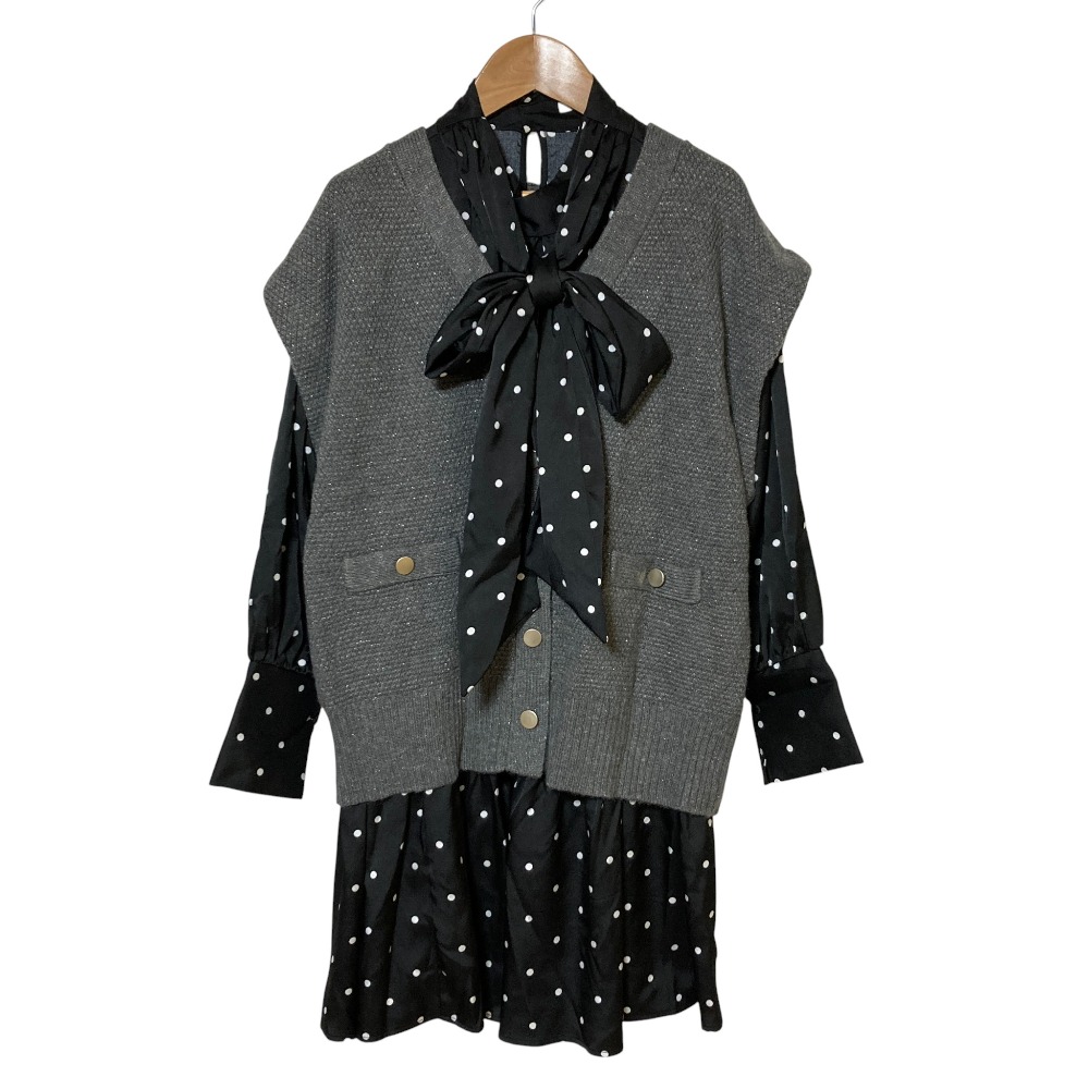 美品 31 Sons de mode トランテアンソンドゥモード ニットレイヤード ワンピース 36 グレー×ブラック レディース 古着 中古