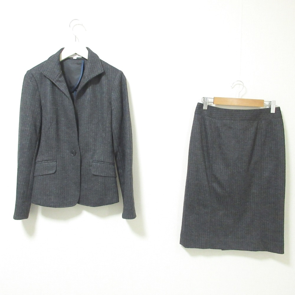 美品 NARACAMICIE ナラカミーチェ ストライプ柄 シングルジャケット×ひざ丈スカート スーツ セットアップ 0 1 グレー レディース 古着 中古