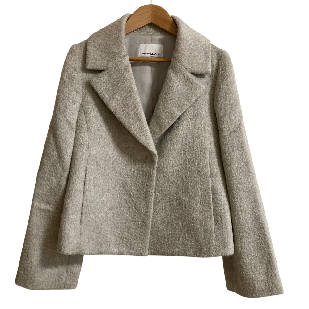 美品 M-PREMIER BLACK エムプルミエ ブラック モヘアブレンド シャギー ジャケット ショートコート サイズ34 グレージュ レディース 古着 中古