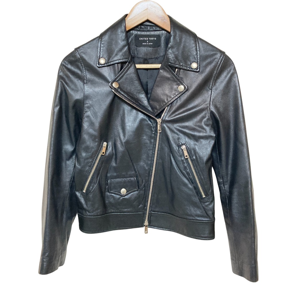 UNITED TOKYO ユナイテッドトウキョウ シープレザーダブルライダースジャケット 507152004 サイズ2 ブラック レディース 古着 中古