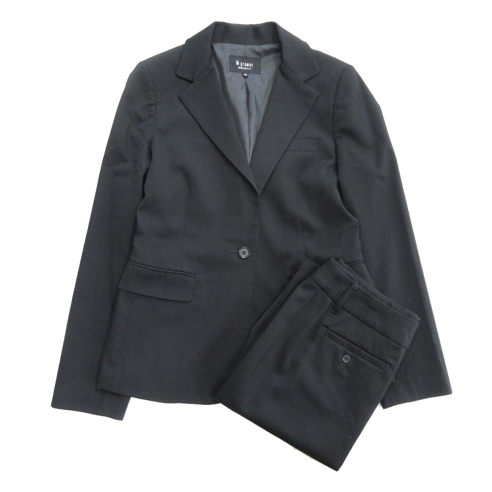 美品 M-Premier エムプルミエ セットアップ スカート スーツ ジャケット ブレザー ウール ビジネス 一つ釦 サイズ38 黒 ブラック レディース 古着 中古