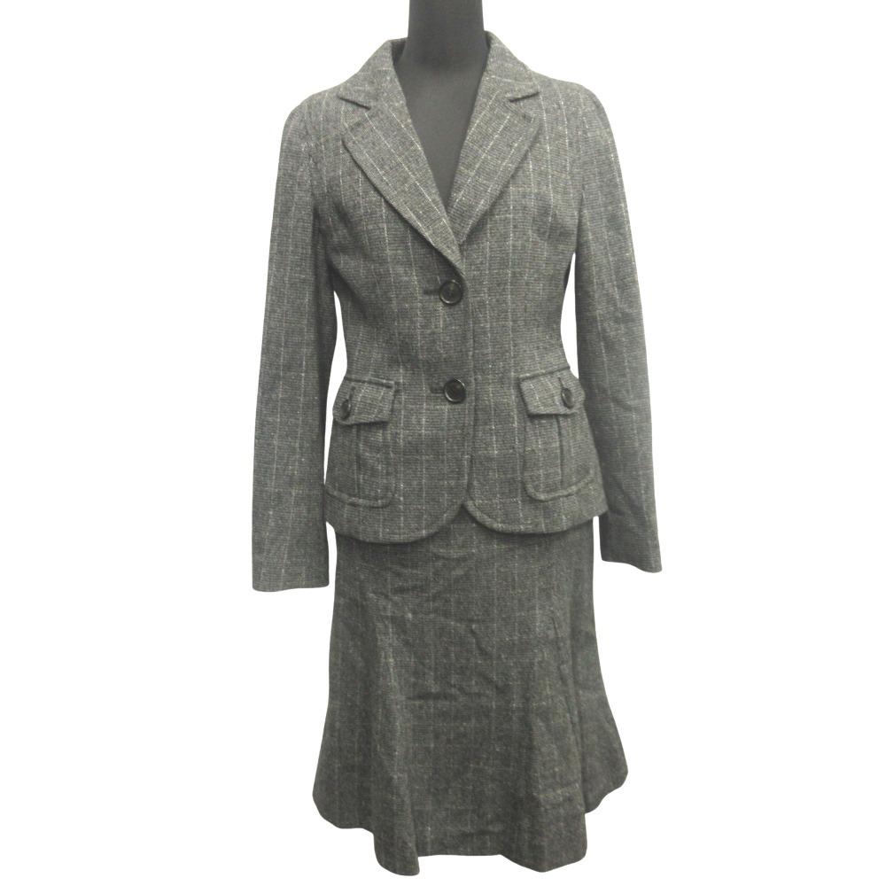 | | カラー | グレー | | 表記サイズ | 36 | | 実寸サイズ | 身幅43cm、着丈58cm、肩幅38cm、袖丈61cm、ウエスト66cm、ヒップ90cm、スカート丈63cm | | 素材 | 画像参照 | | 状態 | スカートのケアタグがとれかかっています 多少の使用感はございますが、目立った汚れやダメージのない比較的状態の良い商品になります。 これから永くご利用していただけるお品物になります