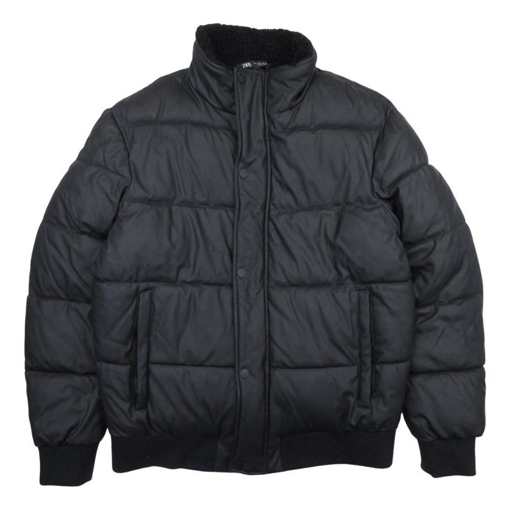 ZARA ザラ ボア襟 ジップアップ 中綿 ジャケット キルティング ブルゾン コート アウター L 黒 ブラック メンズ 古着 中古