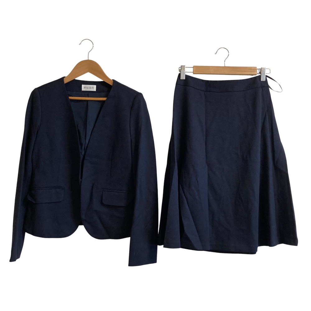 【商品名】PLST プラステ ノーカラージャケット ひざ丈 スカート スーツ セットアップ Sサイズ ネイビー