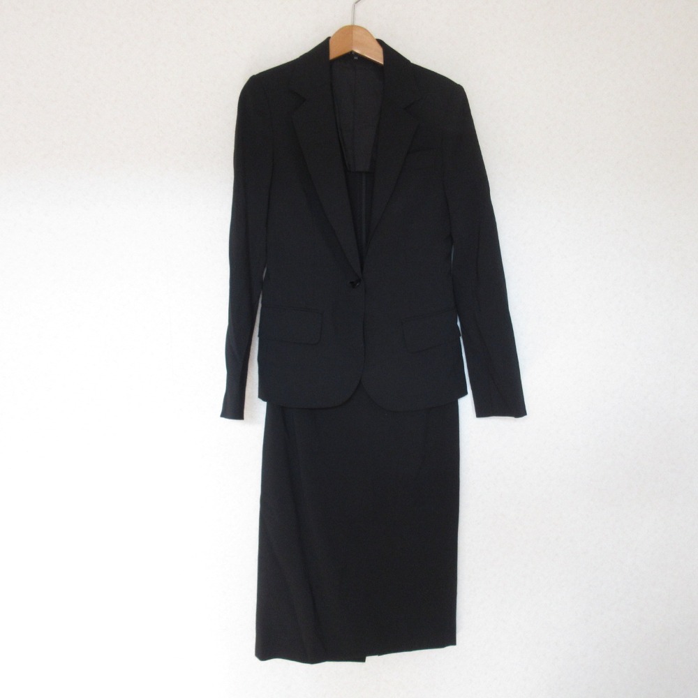 美品 Theory セオリー ストレッチ シングル ジャケット ひざ丈 スカート スーツ セットアップ 0/X0 ブラック レディース 古着 中古