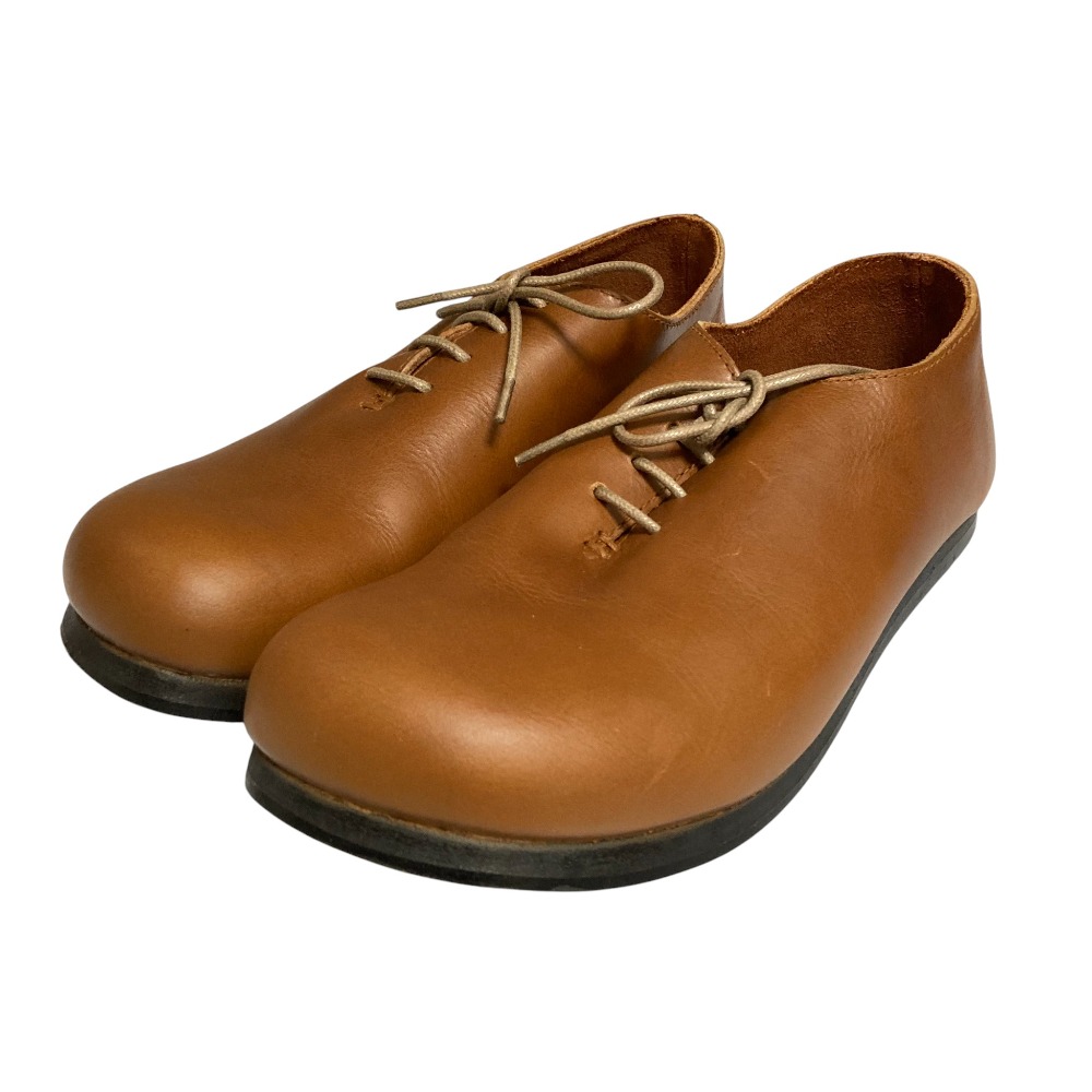 美品 Diu ディウ レザー プレーントゥ レースアップ フラットシューズ サイズL 24〜24.5cm ブラウン レディース 古着 中古