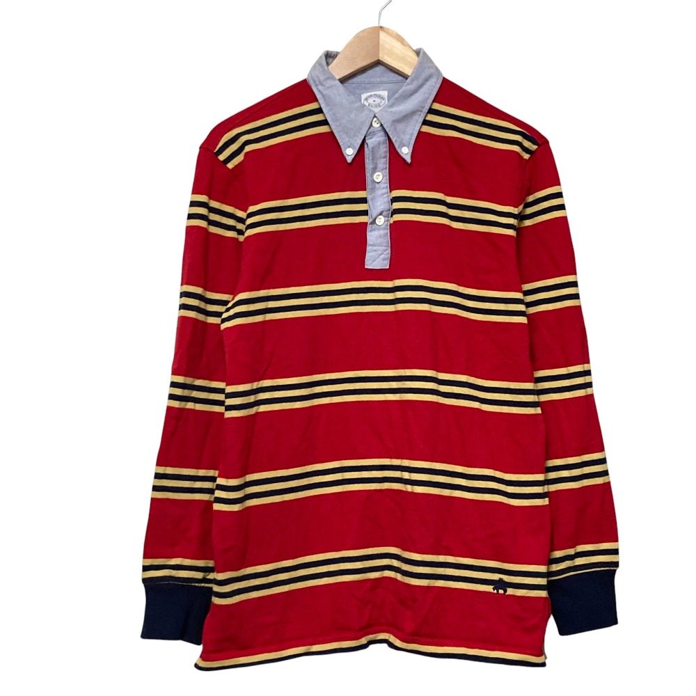 【商品名】Brooks Brothers ブルックスブラザーズ ボーダー 長袖 オックスフォード ラガーシャツ ポロシャツ カットソー M レッド