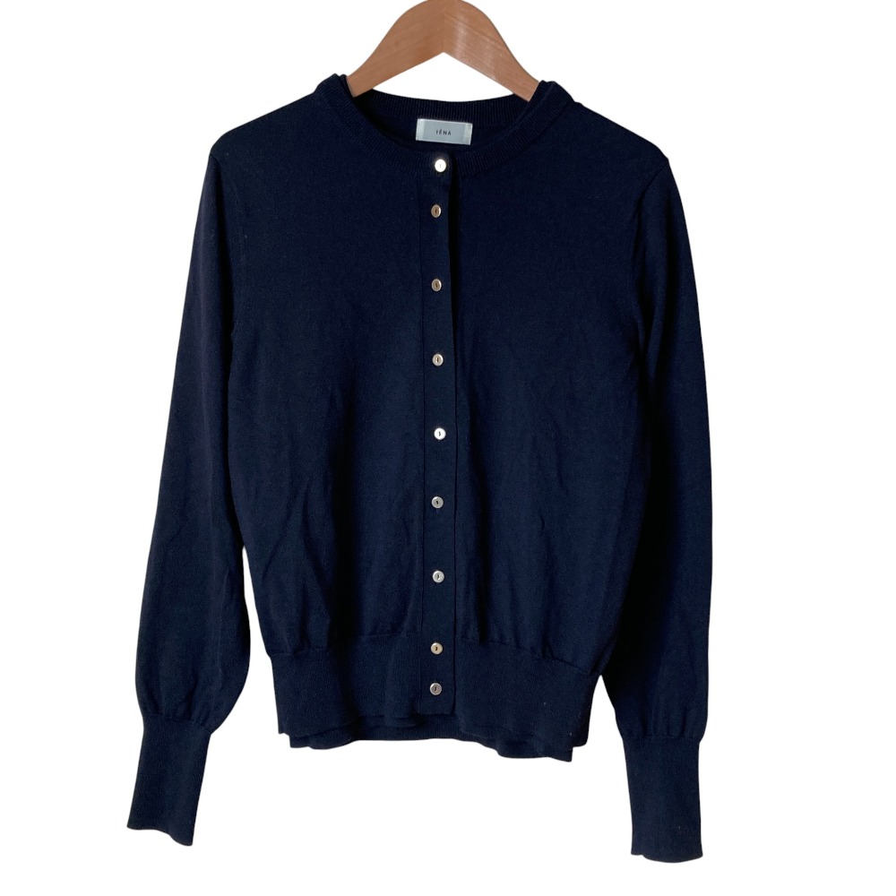 美品 23AW IENA イエナ ESPOIR ウォッシャブルクルーネックカーディガン / ハーフスリーブプルオーバー ネイビー レディース 古着 中古