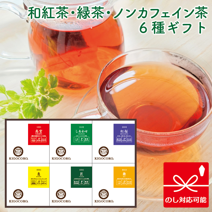 紅茶 ギフト 和紅茶・緑茶・ノンカフェイン茶 6箱入 高宮・しあわせ・紅桜・惠・匠・舞 国産紅茶 お茶 贈答用 内祝い お返し 香典返し 無添加 お礼 お祝 退職