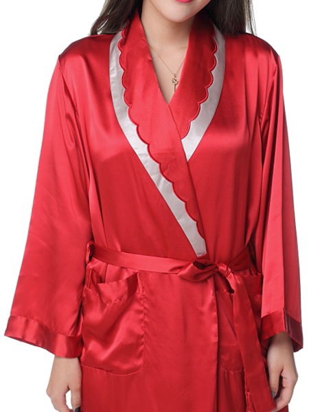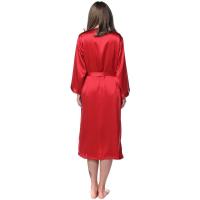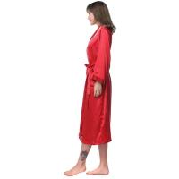シルクガウン レディース 長袖 シルク100% ローブ 母の日 19匁 無地 赤色