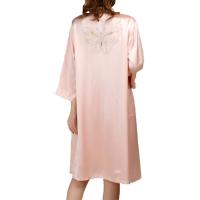 19匁シルク100%レディースガウン ピンク 蝶刺繍 7分袖