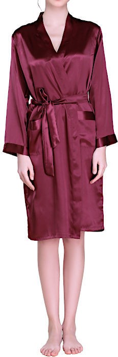 16.5匁シルク100%ガウン レディース 無地 ワインレッド