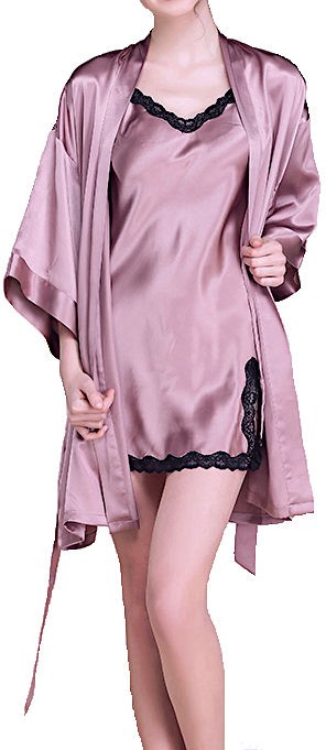 16.5匁シルク100%ガウンスリップ レディース 紫色 7分袖