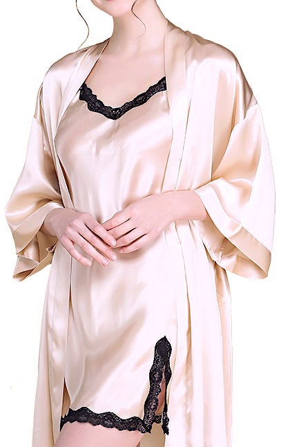 ●無地のガウンと黒レースのスリップのセット
