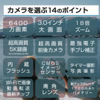 デジカメ デジタルカメラ 5K WiFi機能 18倍ズーム 6400万画素 高画質 ビデオカメラ オートフォーカス ウェブカメラ機能 手振れ補正 IPS大画面 軽量 新品 安い
