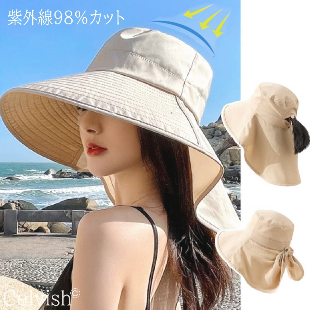 帽子 ベージュ ブラック UVカット 折りたたみ UVハット レディース 軽量 つば広 大きい 紫外線カット 自転車 飛ばない あご紐着脱可能 ポイント消化