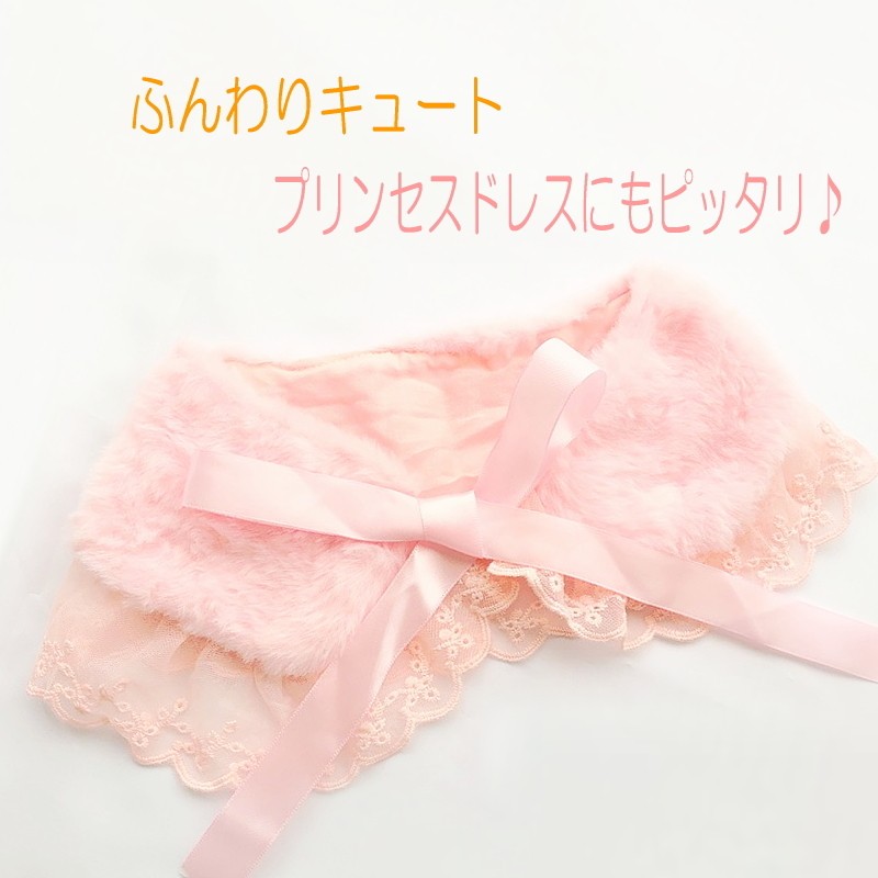 子供 ファーティペット プリンセス ドレス ファー レース つけ襟 マフラー ふわふわ ドレス 衣装 ふわっと軽い ハロウィン クリスマス アクセント ピンク