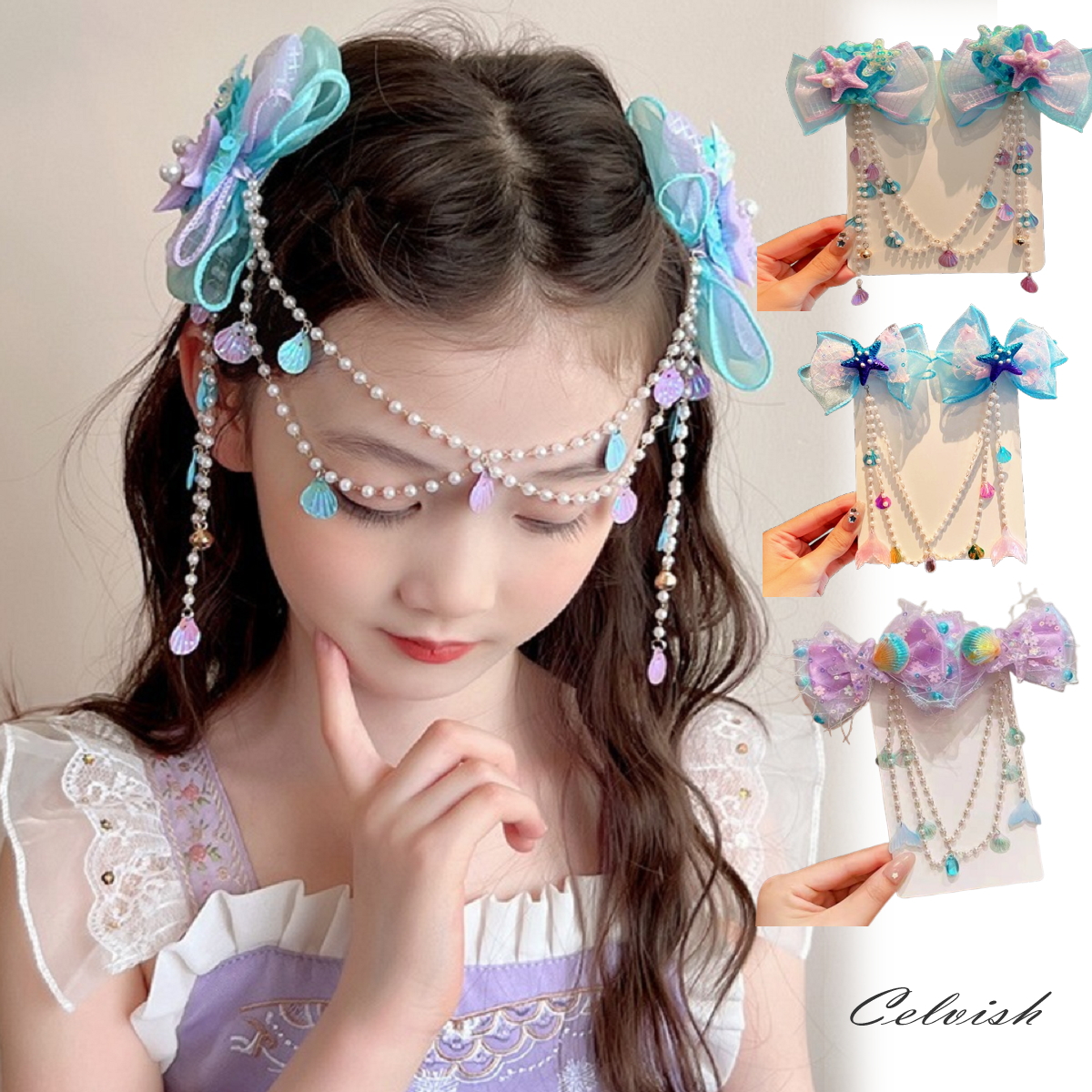 ヘアピン 子供 リボン おしゃれ プリンセス マーメイドアクセサリー プリンセ スアクセサリー 女の子 女子 お姫様