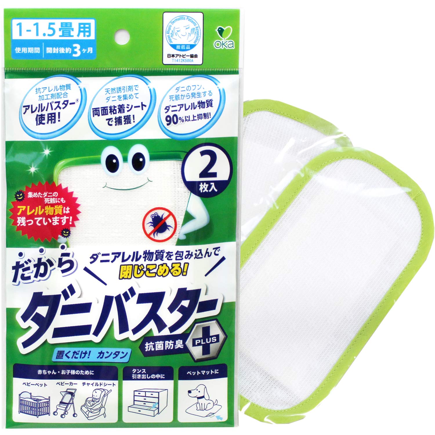 商品名:オカ(OKA) 防ダニ ホワイト 2枚入り ダニバスター ミニサイズ 抗菌 防臭 日本製 天然フルーツ成分配合剤