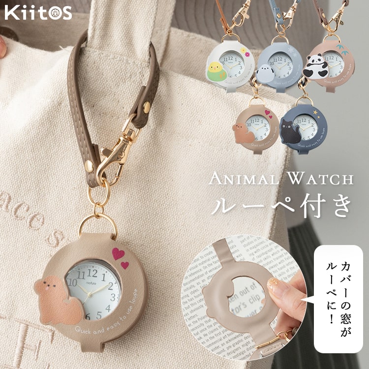 キュートなアニマルモチーフのルーペ付きハングウォッチ。