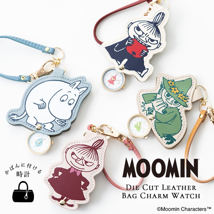 ムーミンのキャラクターがダイカットのポーチになったストラップキーチェーンウォッチ。